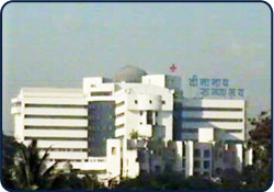 The present building has a capacity of 450 plus beds supported by diagnostic and treatment facilities at ground, first, and second floors. An identical building is planned in the Master plan behind the present one as building as Second Phase.